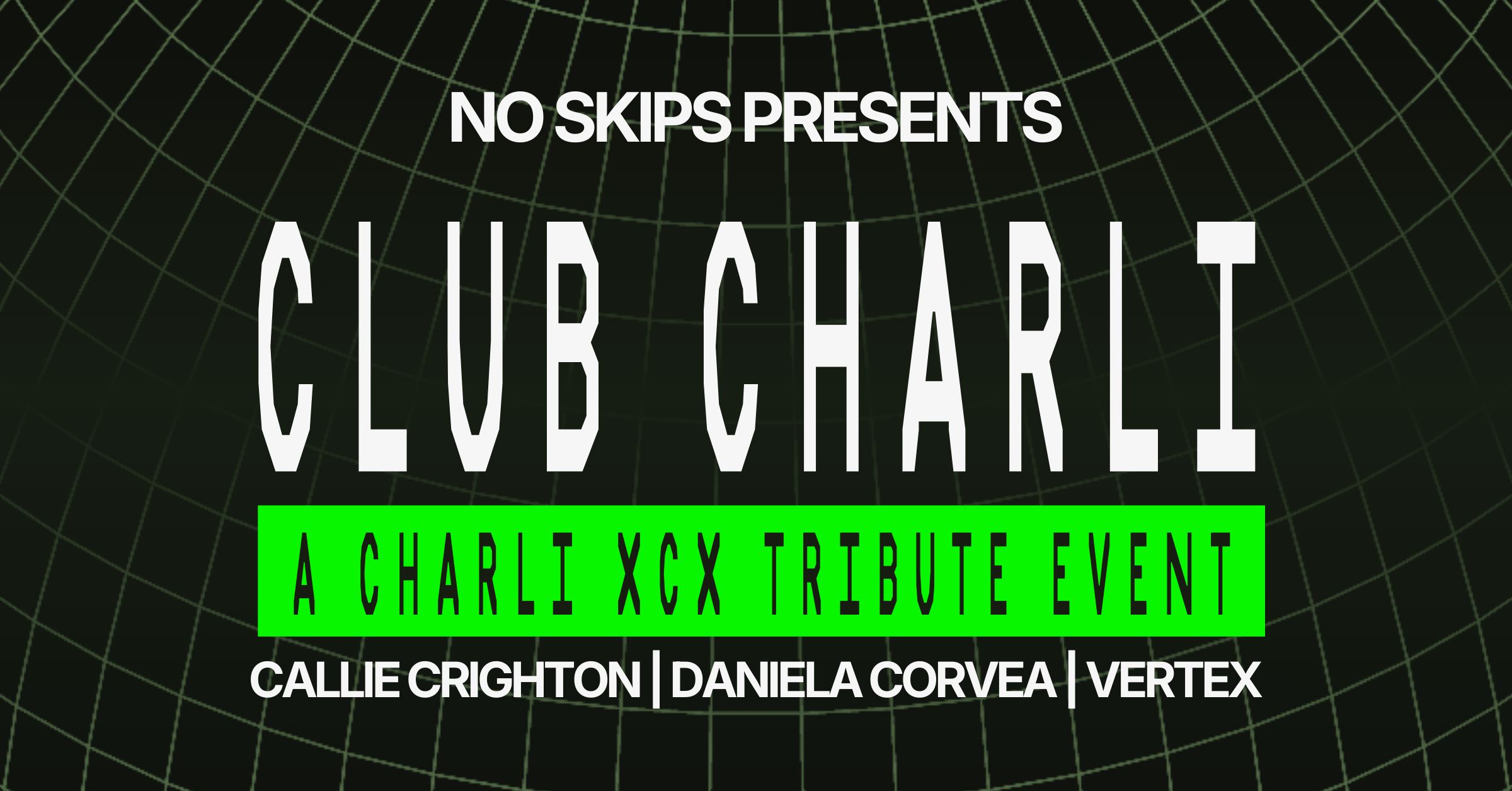 Callie Crighton, Daniela Corvea, and Vertex are bringing a night of Charli bangers. Early blog era cuts, pop classics, club edits, the chaotic emotional songs, the euphoric songs, and her collaborations with Troye Sivan and Billie Eilish to name a few.